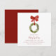 Um convite de casa aberta de natal com coroa suspensa com laço vermelho. Este convite de festa de natal apresenta uma coroa de natal verde com um laço vermelho. Todo o texto pode ser personalizado com qualquer palavra de sua escolha.