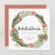 Este cartão de Natal havaiano "mele kalikimaka" apresenta um fundo branco com uma coroa de folhagens tropicais e bagas vermelhas. O verso apresenta um fundo vermelho com padrões de neve branca. Personalize-o para suas necessidades. Você pode encontrar produtos correspondentes na minha loja.