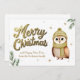 Cartão De Festividades Coruja de Natal Feliz e Dourada