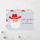 Santa Claus in a cowboy hat for a fun Western take on Christmas. Change the name and the greeting to personalize. Reverse features a matching pattern. Original art by Nic Squirrell.