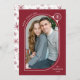 Mande alegria de férias para a família e amigos com um cartão de feriado único de Late Bloom Paperie! O cartão de feriado moderno mostra sua dentro de foto de um mangueiro e quadro fotográfico branco curvado embelezado com um floco de neve branco. Personalize a parte frontal do cartão fotográfico de Natal adicionando uma saudação com um estilo de texto curvo, nome e ano. A placa se inverte para exibir um padrão de floco de neve de morango.