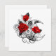 Contorno, lua da crista mecânica com engrenagens, decorada com rosas vermelhas com caules e folhas pretas em fundo branco. Steampunk