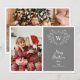 Espalhe o espírito natalino com este cartão de Natal elegante e moderno com um desenho de visco em linha branca emoldurando um clássico brasão facilmente personalizável com suas iniciais sobre um fundo cinza moderno. Adicione uma das suas fotos de família favoritas no lado esquerdo deste cartão de Natal e uma segunda foto no verso.
