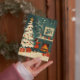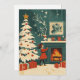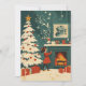 Dê vida ao calor e à nostalgia de uma época de férias vintage com este charmoso cartão de Natal retrógrado. Apresentando uma ilustração encantadora de uma jovem enfeitiçada por uma lareira aconchegante, esta cena captura a essência de uma celebração clássica de feriado com uma árvore de natal de neve, presentes envoltos e estrelas cintilantes. O estilo do século médio e as cores festivas ricas evocam um sentimento de alegria eterno, fazer este cartão perfeito para enviar saudações sinceras a pessoas amadas. O verso inclui um modelo de mensagem para fácil personalização ou uma nota manuscrita, adicionando um toque pessoal aos desejos de feriado.