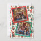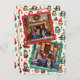 Um cartão de Natal adorável com um clima vintage aconchegante e caloroso. É um modelo de duas fotos. Você pode enviar sua foto de família das férias na área de personalização. O fundo são crianças fofas em trenós em vermelho e verde.