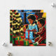 Uma cena retrô de pop art fofa de crianças pequenas de cor abrindo seus presentes de Natal na manhã de Natal. Esta ilustração mostra um sentimento de nostalgia, excitação e alegria e trará todas as boas memórias do passado.