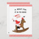 Cartões de Natal equestres engraçados com Papai Noel andando de cavalo de balanço.