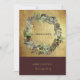 Cristo é Nascer Greenery Wreath. Feliz Natal. O Nome Da Família. De volta temos uma época de férias abençoada. Ouro metálico e fundo burlão.