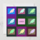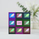 The artwork features colorful squares with elegant holly leaf designs, along with a customizable field for adding a logo or image on the front of the card. It also includes up to 11 customizable typography fields for holiday greetings, currently displaying "Happy Holidays from all of us," and allows space for up to ten signatures, names, or other personal touches.