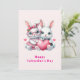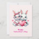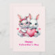 A flat Valentine's Day card with an illustration featuring 2 white furry bunnies sharing a big PINK heart. The girl bunny is wearing a cute bow on her head and heart-shaped glasses. The boy bunny is wearing an adorable little suit with a tie.