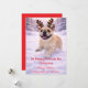 This cute dog holiday card features a joyful dog running through the snow wearing festive reindeer antlers, paired with the tender Christmas quote “So happy it must be Christmas.” The image captures a moment of pure happiness and warmth, making this card perfect for dog lovers and families who enjoy soft, heartfelt holiday greetings. A cheerful and cozy alternative to traditional Christmas cards, designed to share joy and affection during the holiday season. Personalize the inside to add your own Christmas message.