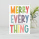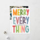 Spread holiday cheer with this colorful “Merry Everything” classic photo holiday card — a modern, joyful, and inclusive way to send warm wishes to family and friends. With a cute, bright, festive design with bold colors and cheerful typography, this holiday card is perfect for celebrating Christmas, Hanukkah, New Year’s, or any winter holiday. The front includes customizable space for your family name and year, making it a personal keepsake your loved ones will treasure. The back offers additional room for a heartfelt custom message and family portrait. This vibrant and unique card brings a playful yet elegant touch to your holiday greetings. Perfect for families, couples, or individuals looking for a modern, inclusive holiday card.