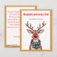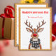 Ho ho ho! This Christmas card is all about spreading cheer with a super adorable Rudolph! He's got the biggest, happiest smile you've ever seen, guaranteed to warm hearts. Flip the card over, and you'll find a festive Christmas border dancing around a fun, silly message from yours truly—Rudolph! It's all about sharing smiles and holiday joy. I hope you love how the artist highlighted my best features, making me extra cuddly and inviting. All the little details come together to create a Christmas card design that's simply delightful!