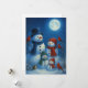 Cartão De Festividades Cute Snowman Family In Snowy Moonlit Night