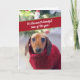 Para os amantes de Dachshund, bem como qualquer tipo de amante de cães, este cartão de Natal apresenta um fofo "cachorro salsicha" em uma camisola vermelha de gola alta. Ele diz: "É a época mais salsicha do ano... até que alguém te enfie em uma camisola de gola alta. Feliz Natal!" Todo o texto é personalizável.