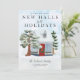 We're decking new halls for the Holidays Moving Announcement Christmas Card. Favorite family photo on the back. Home Holidays Snowy Scene Moving Announcement card.