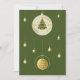 Enfeites elegantes de árvore de Natal, incluindo bolas douradas e decorações festivas em um fundo verde, criando uma atmosfera festiva de feriado.
