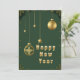 Elegantes enfeites de árvore de Natal incluindo bolas douradas e decorações festivas em um fundo verde, criando uma atmosfera festiva de feriado.