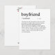 Adicione um pouco de humor e estilo ao seu presente do Dia dos Namorados com este cartão engraçado "Definição de Namorado". Com tipografia espirituosa e minimalista e um visual limpo, ele transmite uma mensagem divertida e leve que certamente fará seu parceiro sorrir. Há também um espaço em branco onde você pode incluir sua mensagem manuscrita personalizada para ele. Quer uma característica espirituosa personalizada adicionada à definição? Entre em contato comigo em: shahirah.creates92@gmail.com, e eu farei algo único para você.