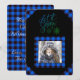 Adorável cartão de Natal com foto “Deixe Nevar” com moldura xadrez azul de búfalo e recorta as bordas deste cartão adorável e pitoresco.