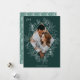 Um cartão de férias moderno e elegante que enquadra sua foto vertical ou orientada a retratos em um quadro em forma de diamante lindamente detalhado com folhas, bagas e folhas de inverno em um rico fundo verde caçador. "JOY" aparece no canto superior esquerdo, com o nome da sua família na parte inferior. O ano é escondido elegantemente na finamente detalhada estrutura botânica branca. Uma natureza delicada e refinada inspirou a escolha para os seus cartões de Natal de 2021.