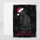 Cartão de Natal Desejando a você um Natal Perfeito com um Gato Preto de Chapéu de Papai Noel