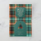 Cartão de saudação de Natal de xadrez com escritura. Cartões de natal cristãos com três modelos. Adicione a saudação preferida à frente desta placa dobrada horizontal. Dentro no topo está a escritura: "Para nós, uma criança é nascer, para nós é dado um filho... e ele será chamado de maravilhoso Conselheiro, Poderoso Deus, Pai Everente, Príncipe da Paz." Isaiah 9:6. Uma árvore de Natal xadrez sobre uma forma verde escura, está no fundo com um lugar para assinatura.