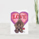 Parada Animal Romântico Cão Cachorro Cachorro Coração e Amor presentes, cartas, e acessórios trazidos para você pela Imagine isso! Design apresenta nossa trabalho de arte divertida de um cão de caça marrom segurando um rosa bonito na boca com corações roxos, vermelhos e cor-de-rosa atrás pintados digitalmente pelo artista infantil, Traci Van Wagoner. Este doce cão de caça apaixonado por design é um presente perfeito para Dia de os namorados, seu aniversário, por propor casamento de uma forma divertida e original, ou apenas para dizer, eu te amo. Puta!