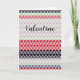 Um cartão de Dia de os namorados muito bonito inspirado no romance dos padrões de renda vintage. O padrão branco cobre listras elegantes em vermelho, cinzas lilás e cores de toning. O texto à frente é simplesmente "Namorados" na tipografia da escrita atrativa. O cartão está vazio no dentro, para sua própria mensagem individual.