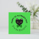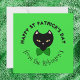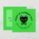 Este design é de um gato preto com gravata borboleta, em um fundo verde, com escrita que diz "Feliz Dia de São Patrício", e nome da família. No verso há espaço para uma mensagem que diz "tenha um feliz Dia de São Patrício!", com um trevo decorativo.
