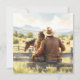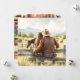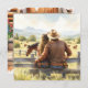 Adicione sua foto favorita a este texto personalizado doce e cartão de Dia dos Namorados country e western rústico com imagem. A frente é uma aquarela romântica doce de um cowboy e uma garota sentados em seu rancho observando seus cavalos. No verso você pode personalizar o texto e adicionar sua foto favorita.