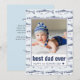 Cartão de saudação do Dia dos Pais apresenta padrão de peixe, sua foto favorita e "melhor pai de todos os tempos" em tipografia moderna em azul. No verso do cartão, personalize a mensagem ou exclua o texto para uma mensagem manuscrita.