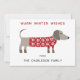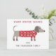 Lindo e adorável cachorro salsicha ou cachorro salsicha Dachshund com uma suéter de malha festiva vermelha e branca. Altere os nomes e a saudação para personalizar. Arte original de Nic Squirrell.