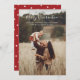 Natal Quarentenado - foto de família divertida e elegante para cartão de Natal moderno. Desenhado com caligrafia e espaço branco moderno, há espaço para uma mensagem personalizada, bem como o nome da sua família e ano. Personalize com uma foto personalizada. O verso é um padrão de estrela fofo em vermelho retrô.