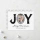 Experimente uma temporada de férias em preto e branco com nosso cartão de Natal exclusivo com doodle. Este cartão único apresenta a palavra festiva 'alegria', com a sua foto de família querida substituindo o 'O'. Inserido numa moldura de imagem desenhada, estenda o seu amor e votos de boas festas enquanto destaca o cartão com 'Feliz Natal, e o seu nome'. Oferecendo nostalgia e prazer, é o presente de Natal perfeito para os seus entes queridos.