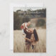 Felicidades em Quarentena - foto de família divertida e elegante cartão de Natal moderno. Projetado com caligrafia e espaço branco moderno, há espaço para uma mensagem personalizada, bem como o nome da sua família e ano. Personalize com uma foto personalizada. O verso é um padrão de estrela fofo em vermelho retrô.