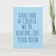 Continue a rir com este Cartão de Férias "Divirta-se na Faculdade, Estamos Alugueirando seu quarto"! Perfeito para pais com senso de humor atrevido, este Cartão de Férias é uma maneira hilária de mandar seu estudante de faculdade embora com um sorriso. Faz um presente divertido e prático para a época de volta à escola!