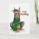 Amantes de cães da raça Doberman gostam de dar este cartão de amante sazonal de animais de estimação excelente ou de recebê-lo! Um chapéu de elfo e cachecol criam uma declaração de moda sobre este lindo cachorro Dobie.