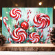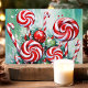 Envie votos doces de férias com este vibrante cartão de Natal que apresenta um arranjo caprichoso de canas-de-açúcar e espirais de peppermint. Contra um fundo verde nevado, este design alegre captura a diversão e a alegria da temporada de férias. Perfeito para espalhar o espírito festivo, este cartão é ideal para quem ama os doces do Natal.