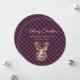 Cartão de feriado de xadrez roxo e de búfalo dourado com cartões de natal de guião em ouro e rena em fundo de xadrez roxo. Personalize facilmente este cartão de feriado roxo e dourado com seu nome de família e um texto. O efeito da folha de ouro só é simulado no trabalho de arte.