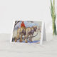 Fine art card of painting "Santa's Shires" by S. Fuess. Santa riding a pair of white Shire draft horses.