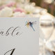 Um charmoso cartão de mesa de casamento, com uma delicada libélula a aquarela, com asas vibrantes e iridescentes em tons de azul, amarelo e vermelho, acrescentando um toque brilhante, mas elegante. O texto é belamente estilizado numa combinação de fontes Emeline e Garamond Roman, combinando sofisticação moderna com o clássico do eterno. O fundo macio, esbranquiçado ou marfim melhora o efeito eetéreo da aquarela, criando uma estética sonhadora e romântica. Perfeito para casamentos e ocasiões especiais, essa carta numérica da tabela captura a beleza da natureza com um refinado talento artístico.