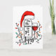 Um design de Natal divertido e festivo que apresenta uma garrafa de vinho vazia coberta com um chapéu de Papai Noel, acompanhada por um copo de vinho tinto. Ambas estão envoltas em luzes de Natal cintilantes, com o texto manuscrito: É a época de ficar bêbado. Este design alegre está disponível em uma variedade de produtos, perfeito para presentear os apreciadores de vinho.
