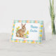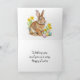 This folded holiday card showcases a charming rabbit design, complemented by vibrant Easter eggs and a spring-themed pastel plaid frame. A customizable greeting is included inside, making it an ideal choice for family celebrations.