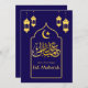 Cartão De Festividades Eid Mubarak Árabe Elegante Azul Moderno Dourado