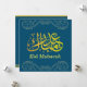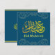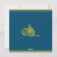 Envie os seus melhores votos para o Eid Mubarak para a sua família, amigos e entes queridos com o nosso cartão de saudação lindo e sofisticado com a caligrafia árabe dourada do Eid Mubarak, borda floral damasco islâmica dourada sobre fundo azul. No verso, há uma bela caligrafia árabe Bismillah dourada e borda de linhas douradas. Se desejar, pode facilmente alterar ou remover clicando em personalizar este modelo.