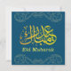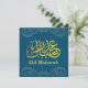 Cartão De Festividades Eid Mubarak Caligrafia Árabe Dourada Azul
