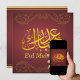 Envie os seus melhores votos para o Eid Mubarak à sua família, amigos e entes queridos através do nosso cartão de felicitações clássico e lindo com caligrafia árabe dourada Eid Mubarak, linda borda floral damasco em fundo vermelho escuro. No verso, tem uma linda caligrafia árabe Bismillah dourada. Se quiser, pode facilmente alterar ou remover clicando em personalizar este modelo.