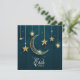 Cartões de boas-vindas com uma lua de ouro e estrelas, Elegante azul Eid Mubarak Moderno e Personalizado, que criam cartões Eid Mubarak com Eid Mubarak deseja celebrar o Eid com os seus entes queridos.