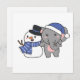 Elefante com boneco de neve no inverno para o Natal - um boneco de neve para o inverno e o Natal. Uma saudação de inverno na estação fria para os feriados. Elefante de Natal com boneco de neve.
